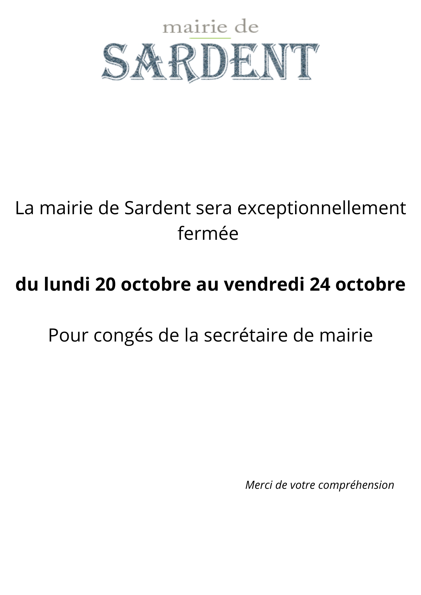 Fermeture de la Mairie de Sardent du 20 au 24 octobre 2025